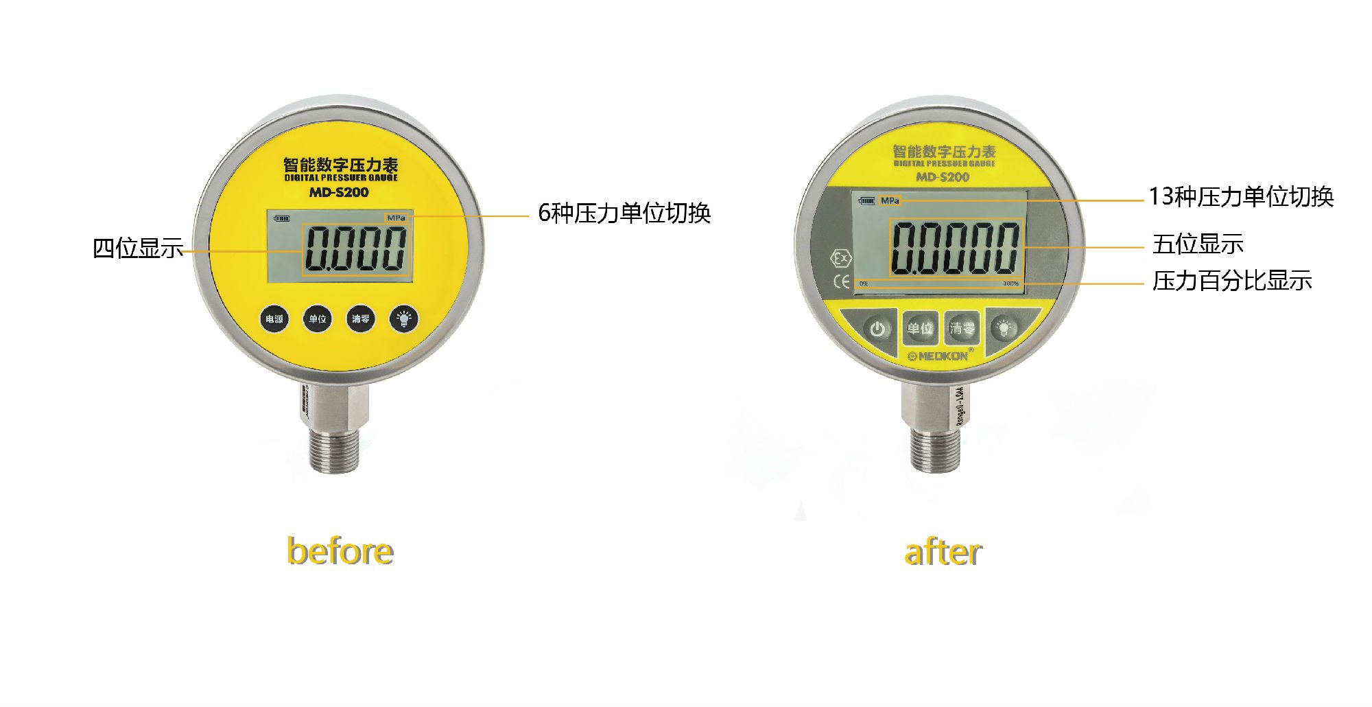 為了給大家提供更好的產(chǎn)品和服務(wù),我司對(duì)MD-S200智能數(shù)字壓力表進(jìn)行了功能參數(shù)和性能升級(jí) 。從2018年8月1日起如無(wú)特殊要求將開始供應(yīng)升級(jí)后的產(chǎn)品,新產(chǎn)品在使用上可以完全替代上一代產(chǎn)品。
